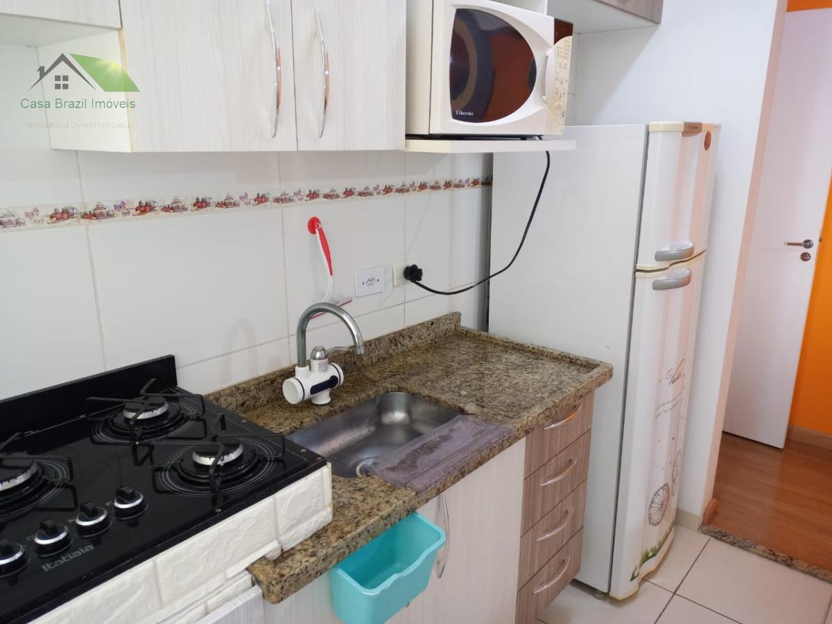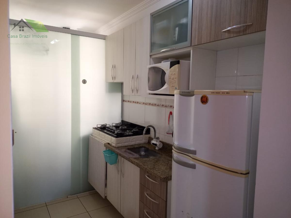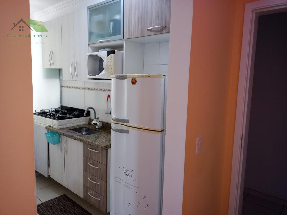 O residencial oferece portaria 24 horas, salão de festas e churrasqueira.