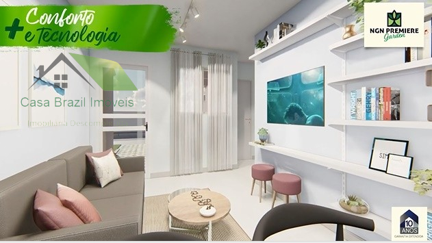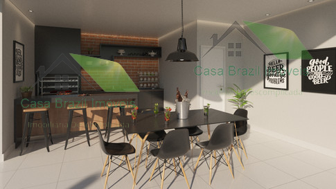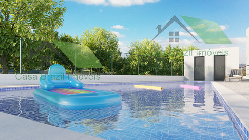 O condomínio oferece área de lazer com piscina, espaço gamer, bar e sala de jogos, brinquedoteca, churrasqueira, espaço pet, lavanderia, playground, praça de convivência, quadra gramada, salão de jogos, salão de festas, academia e mini mercado.