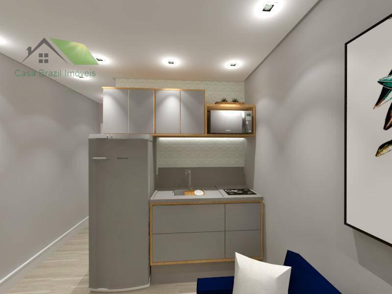 Cozinha com balcão e pia em granito e cooktop, banheiro com chuveiro, utilização da lavanderia do condomínio. incluso no valor do aluguel água, gás, IPTU e limpeza da área externa.