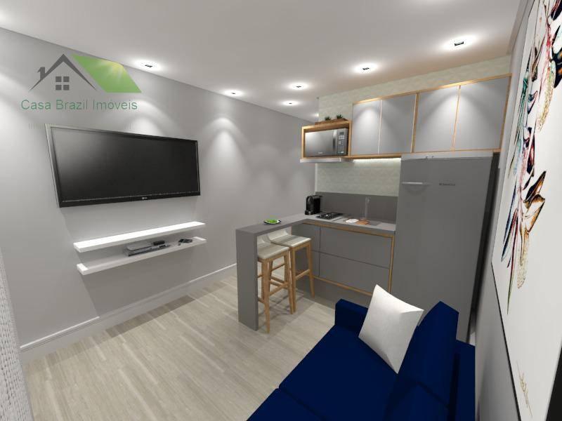 1 dormitório, cozinha americana/sala e banheiro.