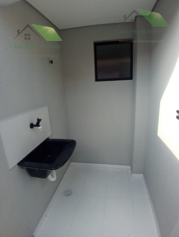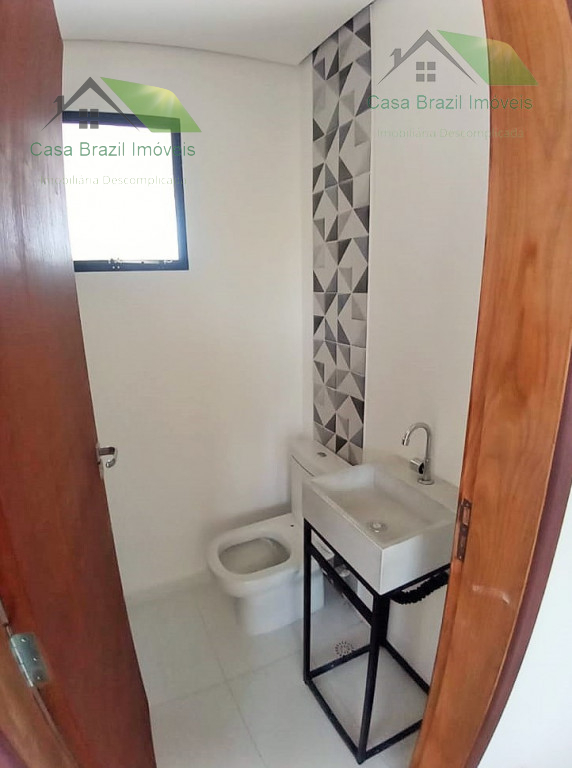 2 dormitórios, banheiro, sala, cozinha americana, lavabo, quintal com churrasqueira, área de serviços e vaga.